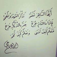بالف ـصحى A Twitteren أيها الساهر تغفو تذكر العهد وتصحو وإذا ما التأم جرح جد بالتذكار جرح فتعل م كيف تنسى وتعل م كيف تمحو