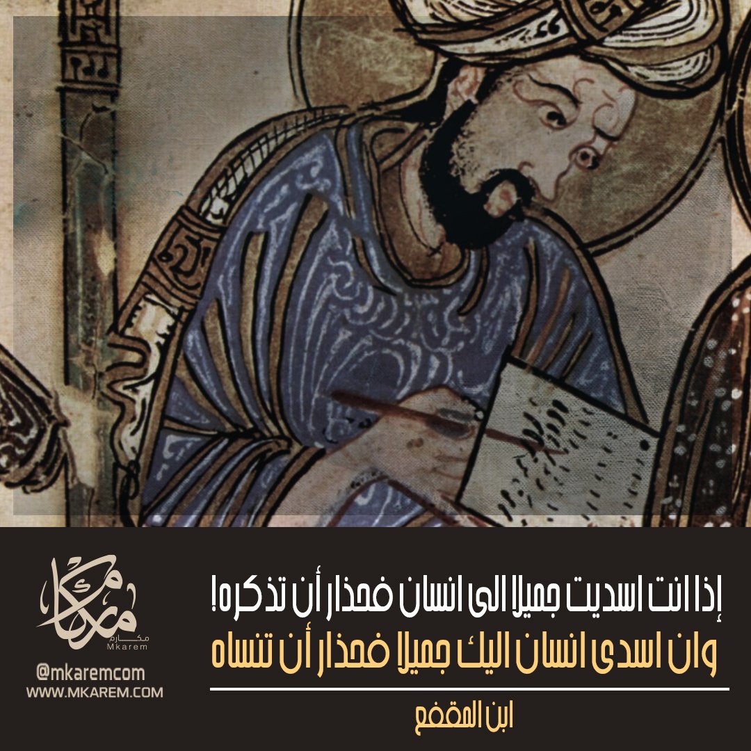 O Xrhsths مكارم Sto Twitter إذا انت اسديت جميلا الى انسان فحذار أن تذكره وان اسدى انسان اليك جميلا فحذار أن تنساه ابن المقفع مكارم