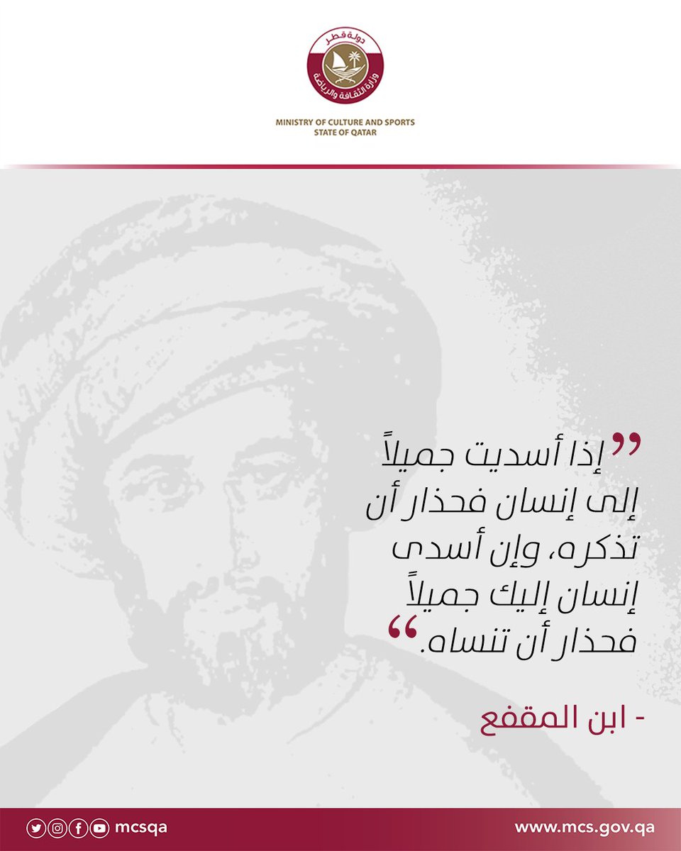 وزارة الثقافة و الرياضة على تويتر إذا أسديت جميلا إلى إنسان فحذار أن تذكره وإن أسدى إنسان إليك جميلا فحذار أن تنساه المفكر ابن المقفع وزارة الثقافة والرياضة نحو مجتمع واع Https T Co 0qoj2urhpy