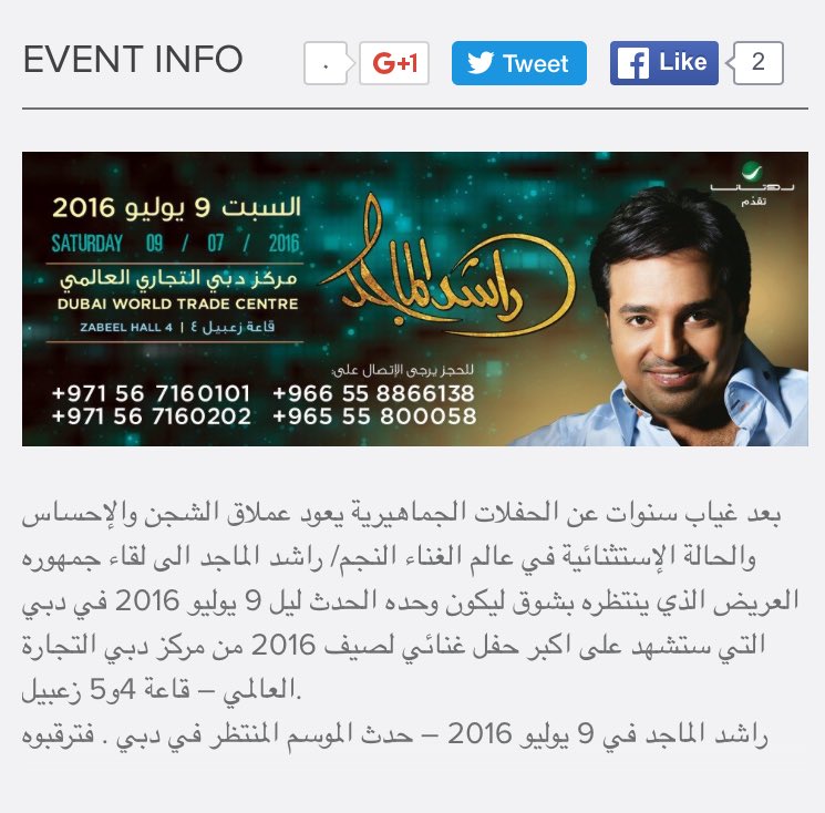 راشد الماجد On Twitter الآن يمكنك حجز تذكرة حفلة الفنان راشد الماجد عبر الموقع Https T Co Ox2bmz8h7f السبت 9 يوليو 2016 مركز دبي التجاري العالمي Audiorotana