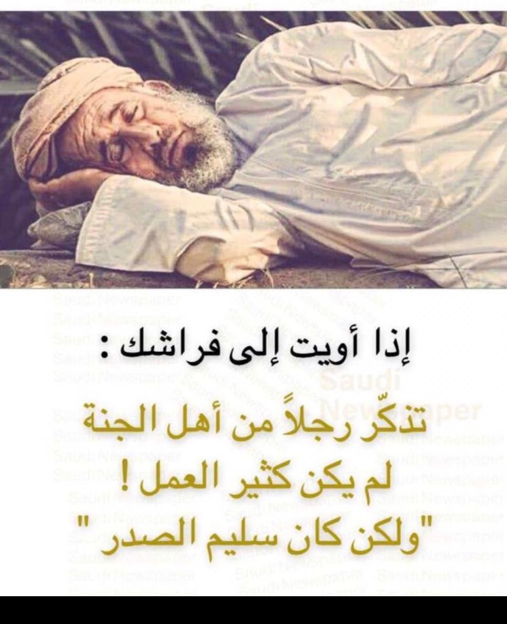 اذا اويت إلى فراشك تذكر رجل ا من أهل الجنة لم يكن كثير العمل ولكن كان سليم الصدر Icy