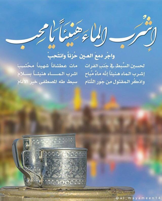 Tahera Ar Twitter اشرب الماء واذكر عطش الحسين عليه السلام السلام عليك ياابا عبد الله الحسين اللهم العن قاتليه وظالميه Http T Co 8lge1jf2he