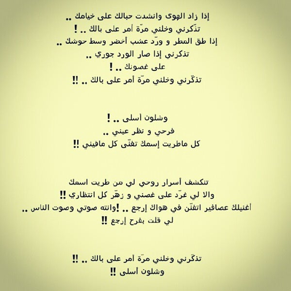سكينة المشيخص No Twitter تذكرني اذا طق المطر ورد عشب اخضر وسط حوشك تذكرني اذا صار الورد جوري على غصونك تذكرني اذا زاد الهوا وانشدت احبالك على خيامك تذكرني وخلني مرة امر