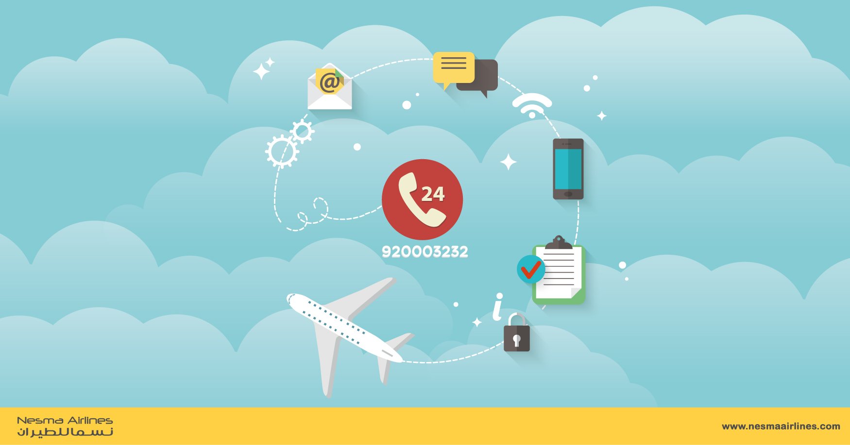 نسما للطيران V Twitter يمكنك الاستفسار عن رحلتك حجز تذكرة جديدة تغيير الحجز الخدمة متوفرة على مدار الساعة 920003232