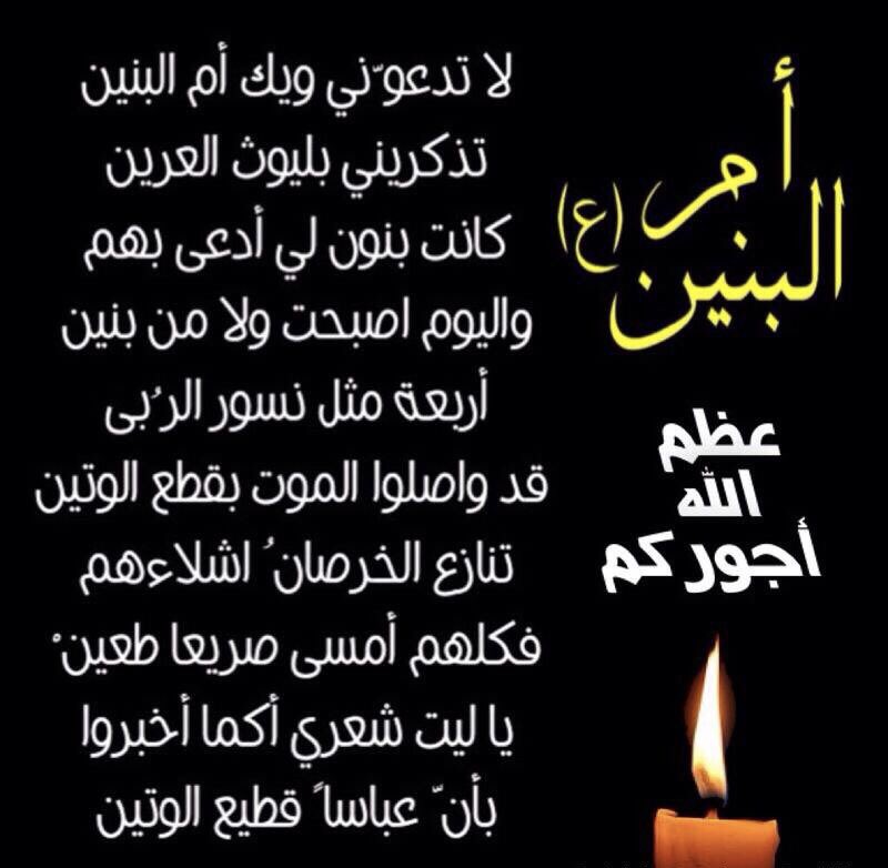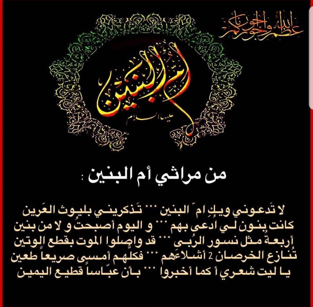 Dr Fatima M Khajah على تويتر لا تدعوني ويك أم البنين تذكريني بليوث العرين كانت بنون لي ادعى بهم واليوم أصبحت ولا من بنين أربعة مثل نسور الربى قد واصلوا الموت بقطع