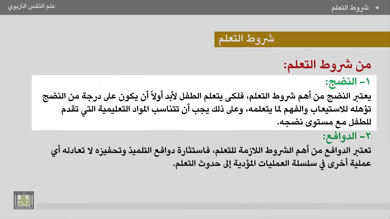 علم النفس التربوي الوحدة 4 التعلم وشروطه علم النفس التربوى