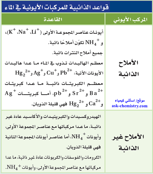 ما هي التفاعلات التي تنتج راسب وهل لذوبان المادة في الماء شروط اسألني كيمياء