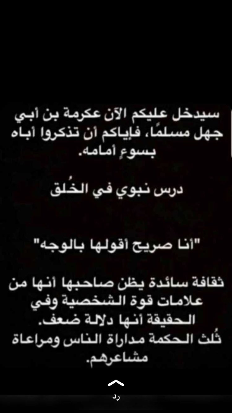 فهد الجمهور On Twitter سيدخل عليكم الآن عكرمة بن أبي جهل مسلم ا فإياكم أن تذكروا أباه بسوء أمامه درس نبوي في الخ لق