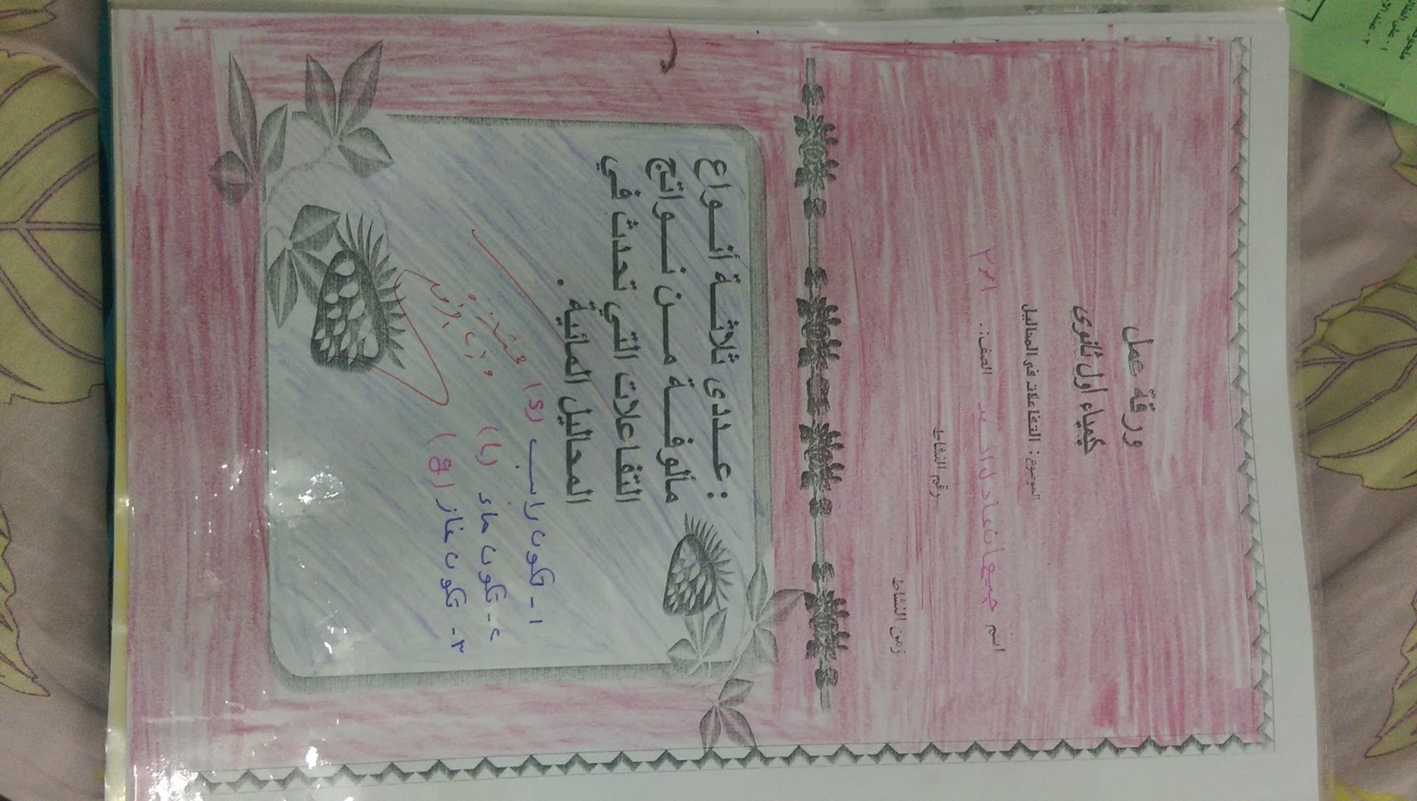 اوراق عمل مادة كيمياء 1 للصف ثانوي نظام مقررات الفصل الدراسي الثاني
