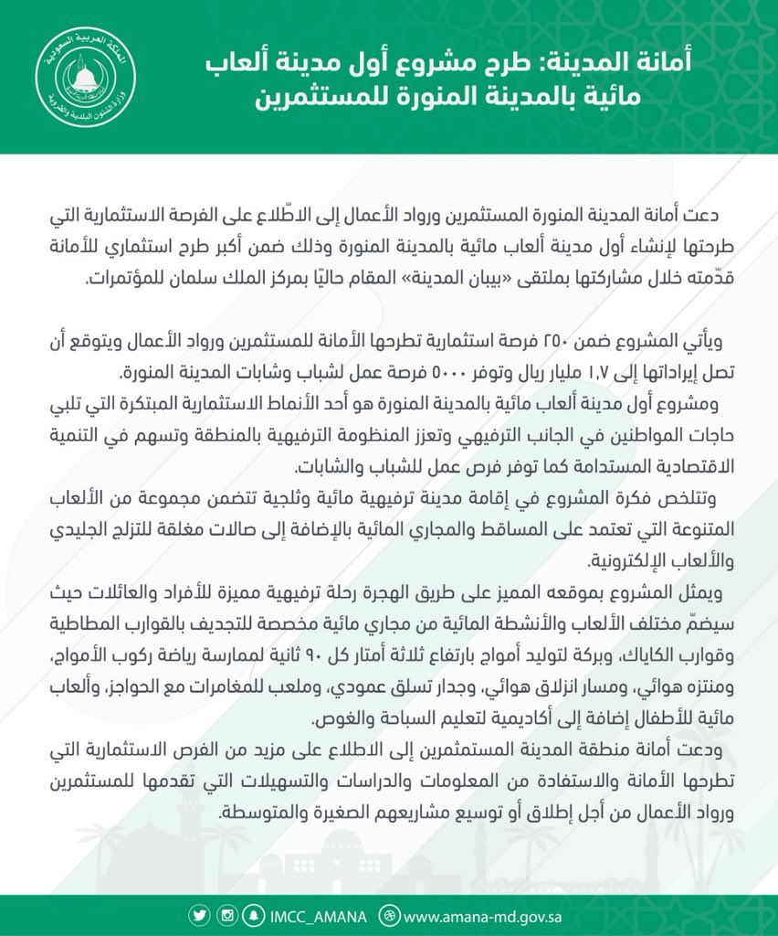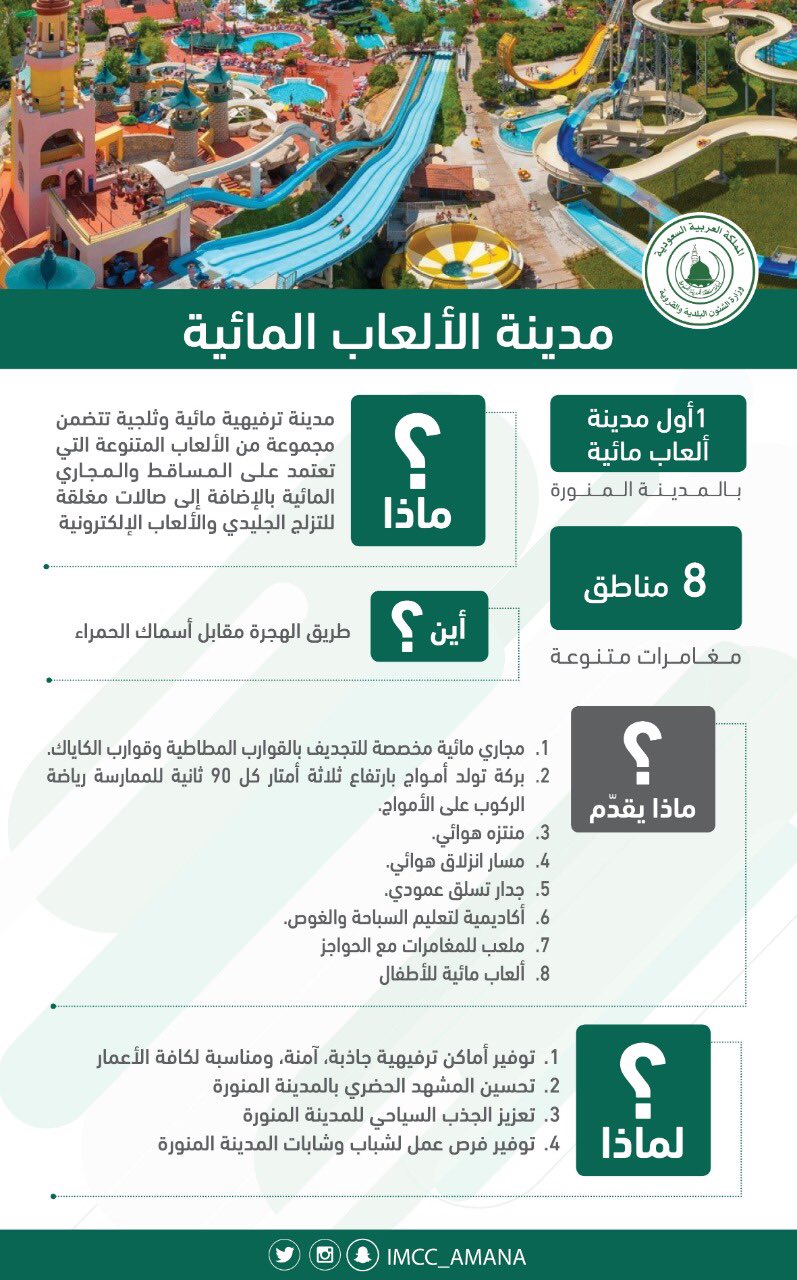 أمانة منطقة المدينة المنورة On Twitter أول مدينة ألعاب مائية في المدينة المنورة مشروع استثماري من مشاريع أمانة منطقة المدينة المنورة نهدف من خلاله لخلق فرص للمستثمرين ورفع مستوى الأنسنة في المدينة للتعرف