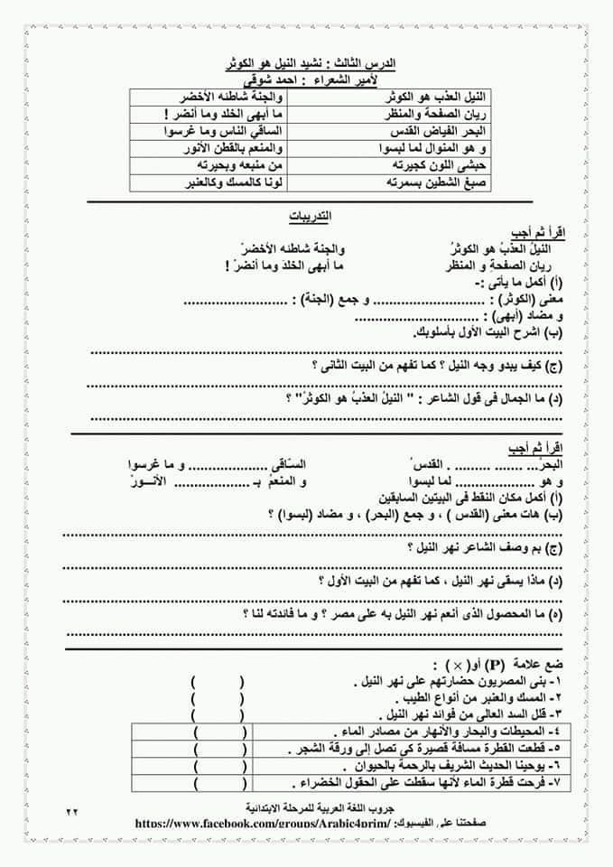 شرح درس النيل هو الكوثر شعر اللغة العربية الصف الرابع الابتدائي نفهم