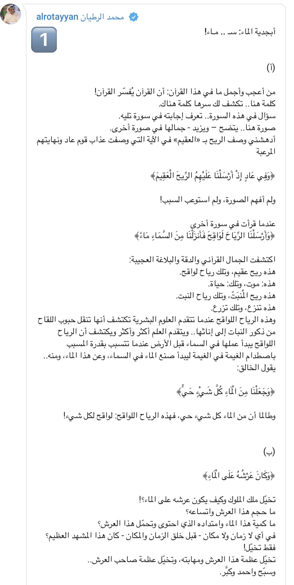 محمد الرطيان On Twitter مقال من لا ريب فيه أبجدية الماء سـ مـاء تدبر تدبر آية