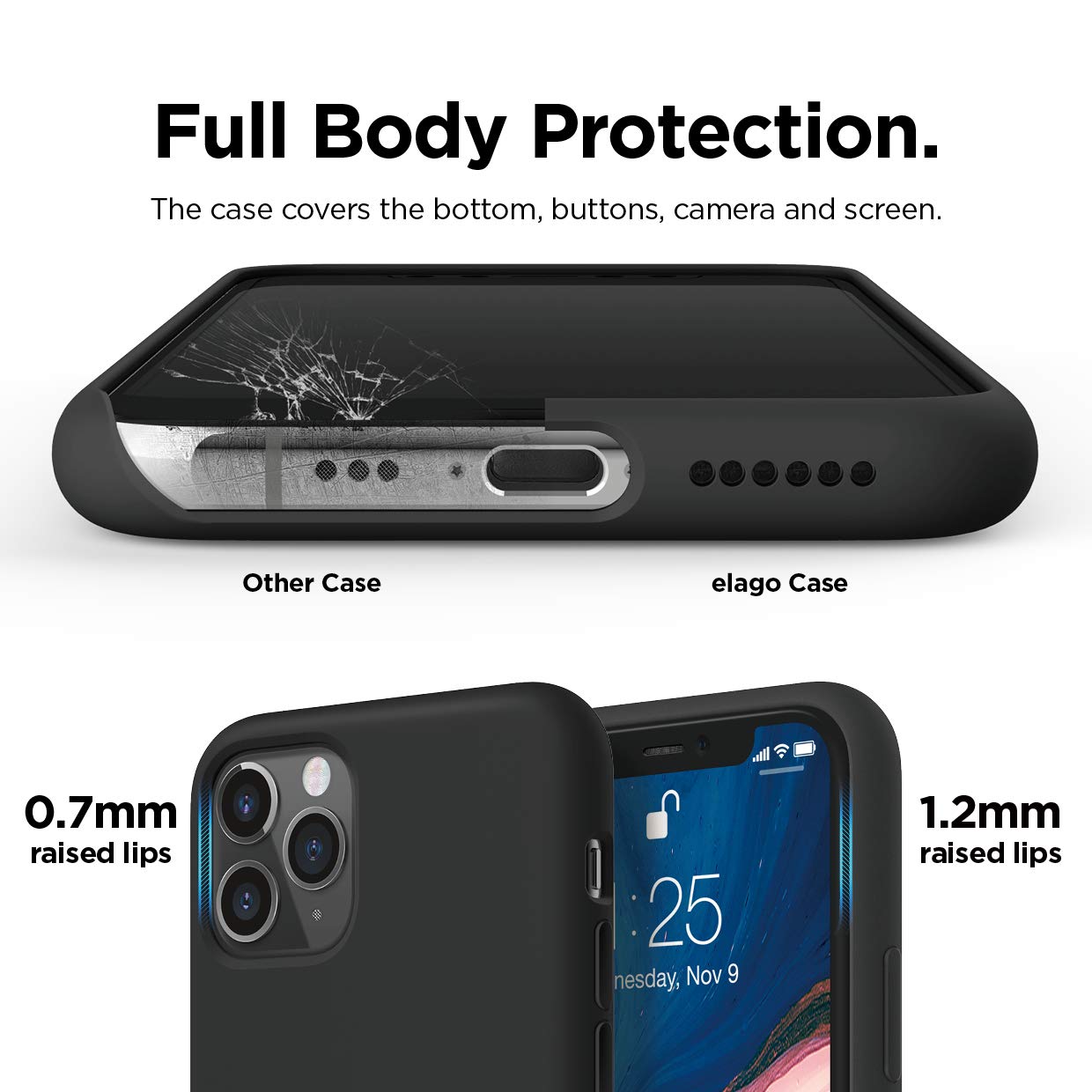 حافظة ايلاجو لجهاز ايفون 11 برو بطانة ناعمة من الألياف الدقيقة مضادة للخدش مضادة لبصمات الأصابع حافظة سيليكون سائلة اسود Es11sc58 Bk Amazon Ae