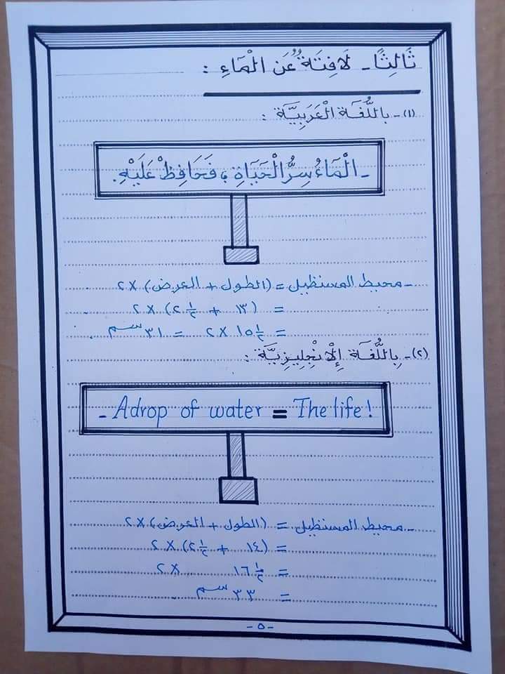 بحث رائع عن الماء بخط اليد جاهز للطباعة للصف الثالث الابتدائى ولافته عن الماء باللغه