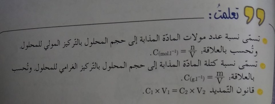 حل اسئلة درس المحاليل المائية في الكيمياء للصف التاسع