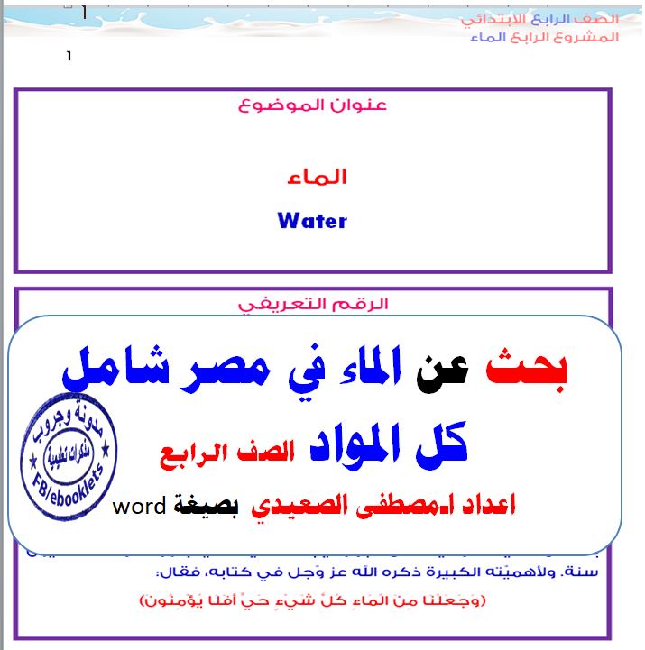 بحث عن الماء في مصرالصف الرابع شامل كل المواد اعداد ا مصطفى الصعيدي بصيغة Word