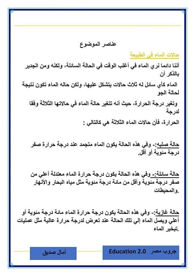 بحث عن الماء للصف الرابع الابتدائي Pdf أهمية الماء للأنشطة الاقتصادية حالات الماء في الطبيعة موجز مصر
