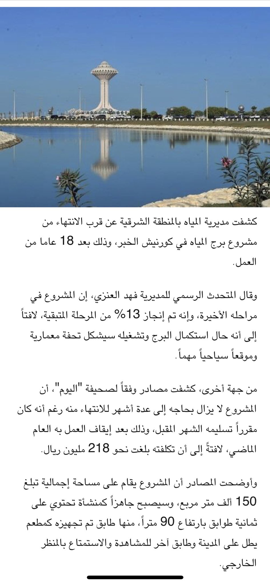 جريدة الرياض انتهاء 57 من المرحلة الثانية لمعلم برج مياه الخبر