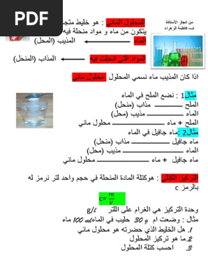 تركيز المحلول المائي التربية الفيزيائية والتكنولوجية