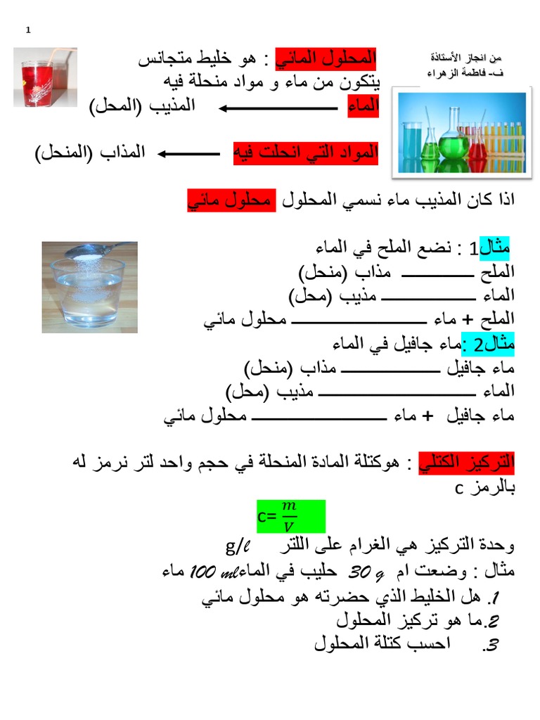 المادة و تحولاتها المحلول المائي أين كتلة المذاب في المحلول Imadrassa