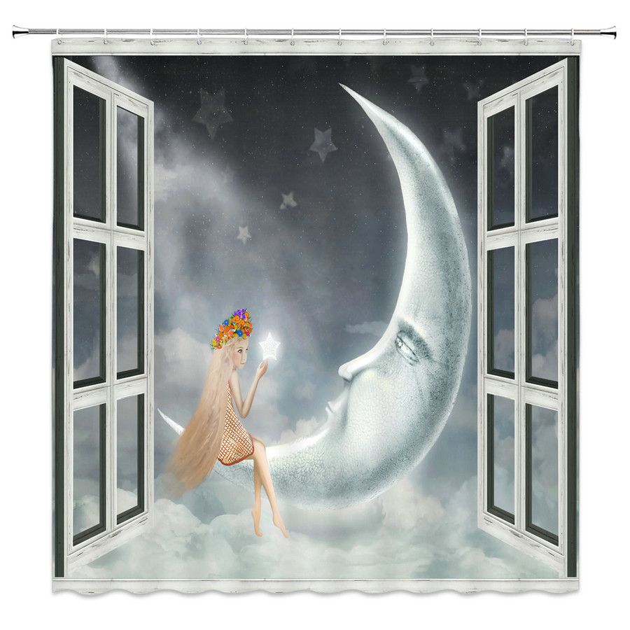 التصميم الإبداعي دش الستائر الكرتون فتاة مضحك القمر ستار عرض ديكور الحمام للماء البوليستر حمام دش الستار مجموعة 69x70 بوصة 2021 من Party8 40 61ر س موبايل Dhgate