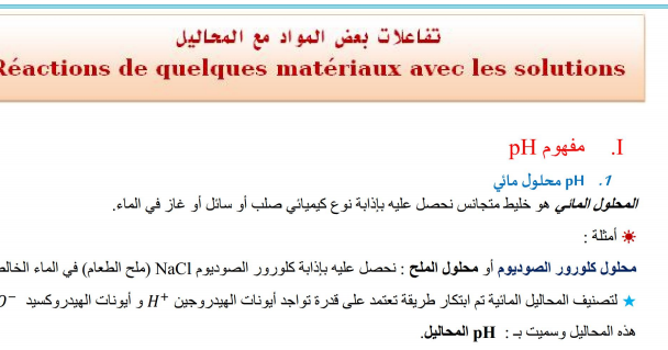 بوربوينت عن درس التفاعلات في المحاليل المائية