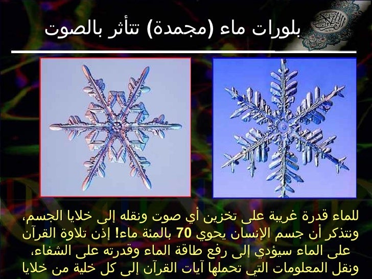 الاعجاز العلمي في القرآن والسنة تأثير القران الكريم على جزيئات الماء سبحان الله Facebook
