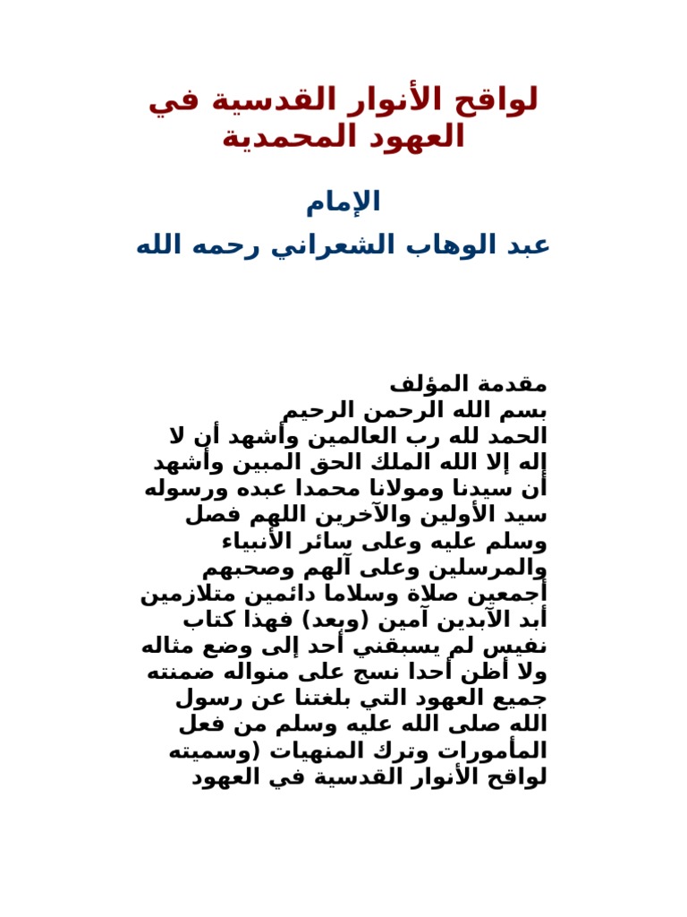 لواقح الأنوار القدسية في العهود المحمدية